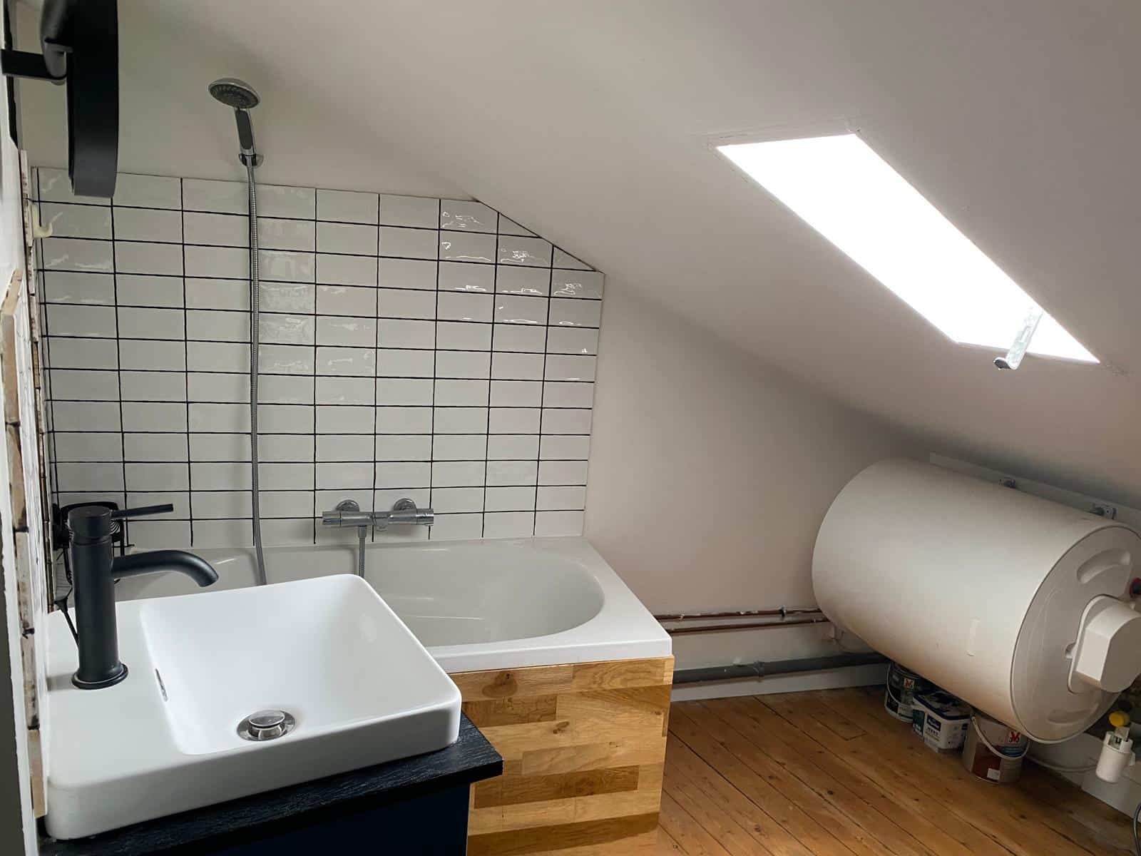 Dans un immeuble en bon état et bien entretenu, au 6ème et dernier étage sans ascenseur, avec une vue dégagée, un studio de 17,09 m², comprenant : une pièce principale avec coin cuisine meublée et équipée, une salle de bains, et des WC communs sur le palier.