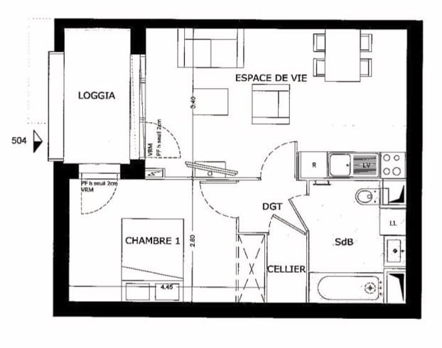 Dans résidence de 2015, en rez-de-chaussée, un appartement meublé de 2 pièces de 40,40m2 et comprenant : séjour avec cuisine, chambre avec placard, salle de bains avec WC, cellier, dégagement, loggia, et un emplacement de parking en sous-sol.